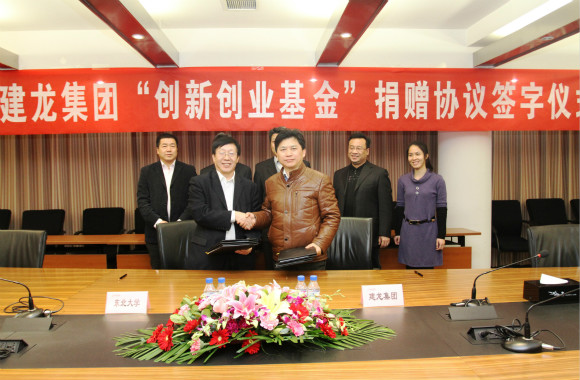 依据协议,建龙集团将自2014年起,每年向东北大学张学良教育基金会捐赠人民币200万元,设立东北大学“建龙重工”创新创业基金,连续设立五年,共计人民币1000万元。这是我校目前获得捐资额最多的大学生创新创业基金,将全部用于支持学生创新创业工作的开展,激励广大学生投身创新创业实践,孵化优秀创新创业项目,探索校企合作、协同创新创业的新模式。