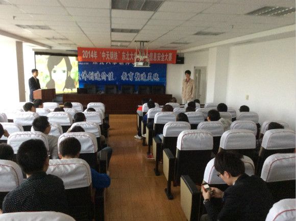 | 2014年5月12日,由软件学院团委承办,软件学院学生科学技术协会协办的2014年“中天钢铁”东北大学信息安全大赛在综合楼610室成功举办。本次比赛是为了普及信息安全知识,培养大学生的创新意识,团队合作精神,提高大学生的信息安全技术水平和综合能力设计,促进高等学校信息安全专业课程体系,教学内容和方法的改革;并选拔优秀人才参加2014年全国大学生信息安全竞赛。 经过初审,共有14支队伍参加了本次答辩,软件学院教授周福才,软件学院教师徐剑、杨巍老师担任本次答辩会的评委。依据其创新性、实用性、可实行性进行评判,最终产生一等奖一名,二等奖两名,三等奖三名,优秀奖八名。并把优秀的作品推到国家比赛。 本次比赛秉承 公平、公正、公开、创新的原则,在东北大学学生创新中心、软件学院团委的指导下圆满的完成了任务。 |
