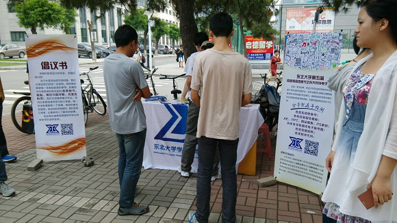 资料交换途径:学长学姐(资料持有者)可以到现场或通过东大科协微信留言板以【资料分类号】+【资料名称】+【姓名】+【联系方式】的格式发布资料信息,想要获取资料的同学可以到现场或扫码关注东大科协官方微信(微