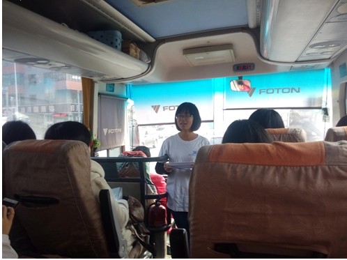 返回学校的车上亦是不乏乐趣,相关工作人员组织进行了有奖竞猜活动,大家积极踊跃的热情与争先抢答的声音,回荡在空气中,车间里洋溢着激情与阳光的气息。当然,也让参观者对我们这次的活动进行了评价,还拿出一个本子,让他们在本子里写下或是体会,或是建议,亦或是意见。有几位参观的同学都发出了感叹说:“下次如果还有这种活动,我一定还会报名参加”。