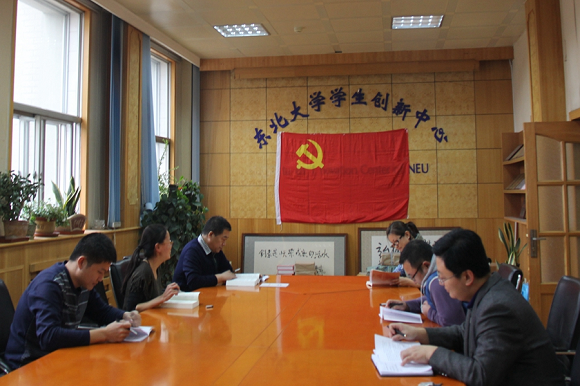 2014年10月31日14:30,东北大学学生创新中心全体人员在创新中心会议室(图书馆三楼311-009房间)展开了题为“学章程,品良著,促工作”的读书活动,中心主任张立志主持了本次读书会。