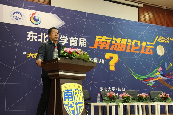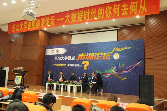 由东北大学主办,东北大学学生创新中心承办的首届南湖论坛——大数据时代的你何去何从于11月27日晚在科学馆成功举行。出席本次论坛的嘉宾有东网科技有限公司总经理杨宝卫,辽宁省经济与信息化委员会软件处处长吕翀南,辽宁省商业模式研究会秘书长、辽宁省红网科技有限公司董事长王凡,沈阳赛斯特科技发展有限公司董事长李泽青,辽宁省电子商务协会秘书长张颖,东北大学软件学院教授周福才,东北大学团委副书记曲佳,东北大学科技产业集团副总经理相广海以及各学生企业负责人。本次论坛由东北大学学生创新中心主任张立志主持。