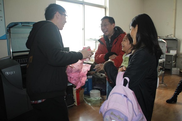 随后团队成员介绍机器人创新基地的3D打印技术并将3D打印的小礼物赠与周崑先生和他的千金。周崑先生表示,大学生能接触先进技术很好,对培养学生的创新能力和开阔学生的视野有很大的帮助。最后周崑先生一家与ACTION团队成员合影留念。临走时,周崑先生再次鼓励ACTION团队说,“我们要做我们说自己是第二,没有队伍敢说自己是第一的团队”。同学们以热烈的掌声表达了团队的信心。