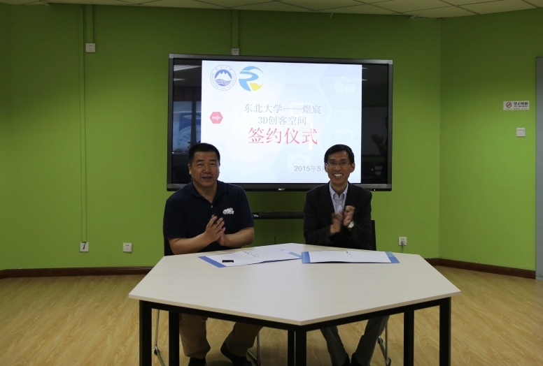 2015年5月29日,东北大学——煜宸3D创客空间战略合作协议签约仪式在东北大学科学馆302举行。煜宸集团总经理、东北大学校友高宇博,东北大学学生创新中心主任张立志,校友总会主任李鹤,艺术学院副院长张书鸿,学生创新中心创业部部长黄晓颖以及三人形3D创意打印团队成员刘汉通、李论,共同出席签约仪式。