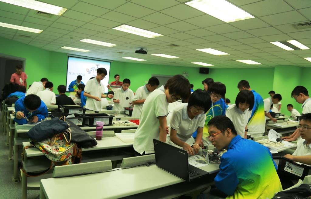 为了增强本次活动的互动性,我校《机器人设计与制作》课程的任课教师李海龙老师受邀为全体师生带来机器人设计与制作体验课,通过基本知识和设计原理的解读,以团队为基本教学模块,为学生实践知识、改造经验创设情境,让学生在互动式教学、体验式设计中感受机器人活动的乐趣。课堂上,超常实验班的小精英们团队协作、手脑并用,高质量完成了设计任务,并将自己的作品和设计经验与大家分享。课程气氛非常活跃,直到课程结束,大部分学生还沉浸其中,思考着机器人设计的改进方案。