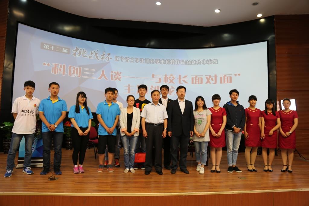 2015年6月7日下午,辽宁省第十二届“挑战杯”大学生课外学术科技作品竞赛决赛期间,中国工程院院士柴天佑、辽宁省知识产权局谢滨、东北大学校长赵继先后来到东北大学科学馆201报告厅,做客“挑战杯”竞赛的“院士创新创业报告会”、“专家知识产权报告会”、“科创三人谈—与校长面对面”主题沙龙系列交流活动,与东大师生、参赛选手共话创新创业。