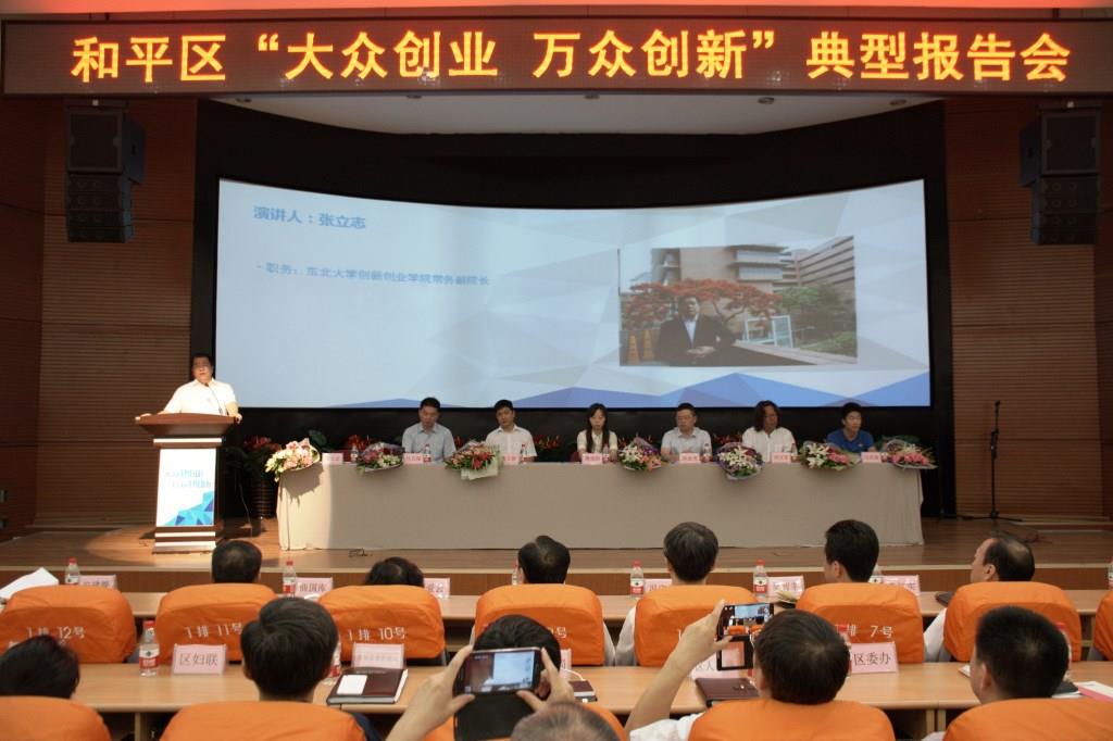 在随后举行的报告会上,创新创业学院常务副院长张立志以《以基地为依托的东北大学特色创新创业之路》为题做主题报告,详细介绍了东北大学在创新创业教育领域的新探索、新成效,并现场与参会听众就创业创新相关问题进行了互动交流。区委书记冯守权,区长田家,长白岛经济区管委会常务副主任吴智丰,区委常委、办公室主任解润泽,及区人大、区政协、区政府相关部门主要领导和大学生代表,有创业创新需求的企业和个人,共计300余人参加本次会议。