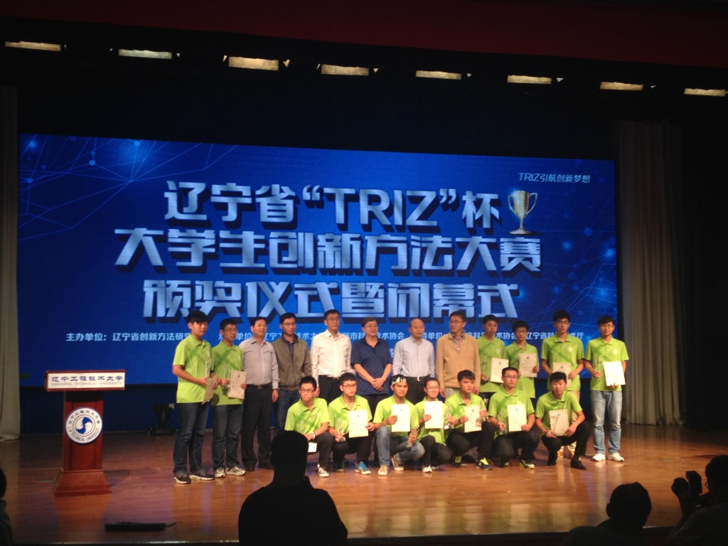 9月11日-12日,由辽宁省科协、省创新方法研究会主办的辽宁省首届“TRIZ杯”大学生创新方法竞赛在阜新辽宁工程技术大学举行。来至全省10余所高校的39项作品入围本次竞赛。我校2项作品参加了到现场参加了比赛。并获一等奖1项,三等奖1项。