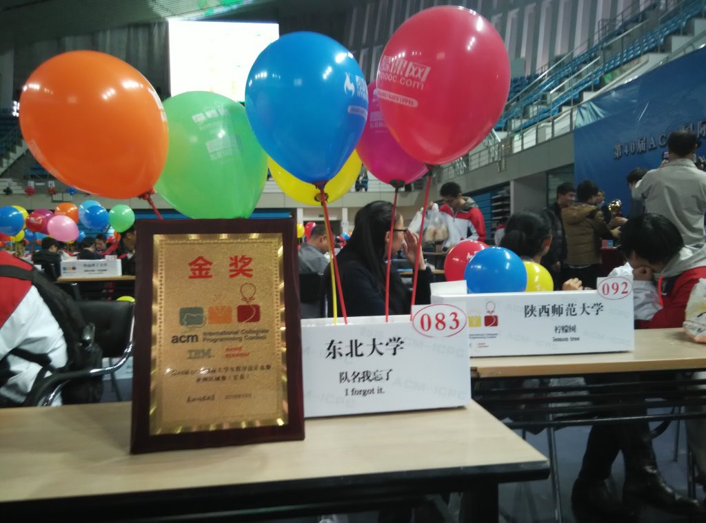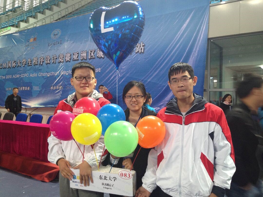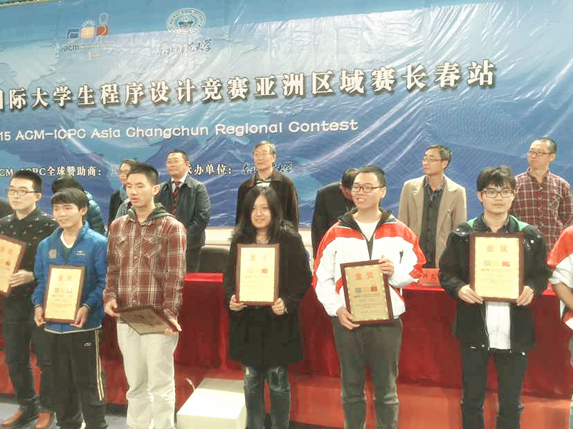 2015年10月18日,第40届ACM国际大学生程序设计竞赛亚洲区域赛长春站于东北师范大学体育馆成功举行,来自北京大学、华中科技大学、武汉大学等国内124所高校的220支代表队参赛。经过五个小时的激烈角逐,我校派出的3支参赛队伍斩获1金2银的好成绩,这是我校参与该项赛事以来获得的首枚金奖,取得历史性突破。其中,首枚金奖由我信息学院谢海滨、刘恒宇,软件学院王涵组成的I forgot it代表队斩获。