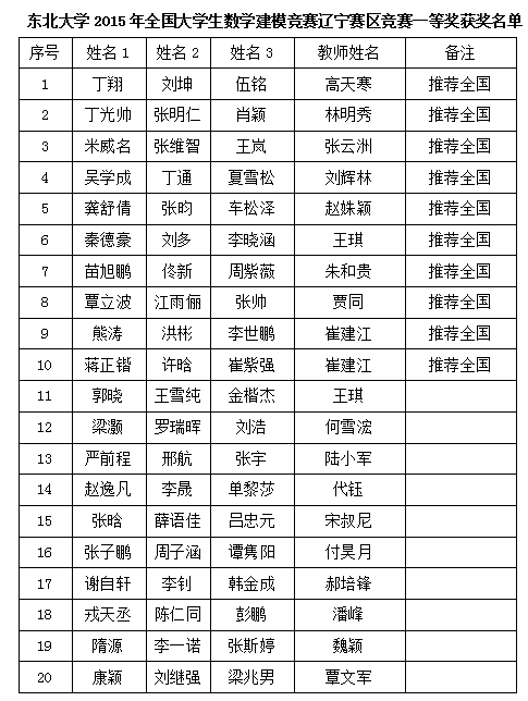 (通讯员 朱翠兰)2015年全国大学生数学建模竞赛辽宁赛区竞赛评审结果近日揭晓。我校代表队喜获一等奖20项、二等奖21项、三等奖49项,创历年来最好成绩。其中,20个一等奖获奖参赛队中,10支参赛队获得推荐全国赛资格。