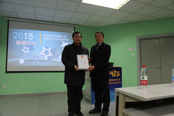 论坛由创新创业学院常务副院长张立志主持,他介绍了南湖论坛的背景和创办意义,并受学校之托向李家华教授颁发了东北大学创业导师聘书。李家华教授高度肯定了东北大学的创业教育工作,并以一只指向目标的手开启他的讲演。他说指向目标的手有三只手指指向自己,在大众创业万众创新的时代背景下,对于我们来讲,三只手指分别代表学校、老师、学生自己,这三方面在创业教育生态系统优化过程中至关重要。李家华教授展示了哈佛,斯坦福以及麻省理工等世界一流学府的教育体制及氛围,鼓励大家从内部打破自己,创造价值和超越现状,向生活学“真”,向理论学“深”,向市场学“活”。他还表示,在国家政策的支持与鼓励下,大学生创业将同高考一样,成为中国大学生公平公正竞争,把握命运的又一契机,要学会发问,挑战现状;学会观察,获得见解;学会交际,寻找想法;学会实验,尝试体验。在互动环节,就“如何实现企业管理中传统的控制到释放的转化”问题,李教授回答“企业的管理就如同弹簧,要根据实际情况缩放自如”。就“没有技术,没有专利的文科生如何创业”问题,李教授幽默的回答“要做敢于发问的文科生,做有idea的文科生,我就是文科生,我成创业教育的专家了。”