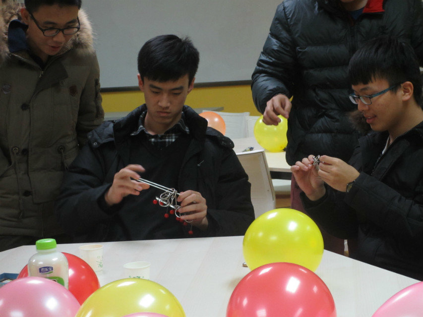 当日下午两点,BCA部长杜文杰,创业部部长王恒亮,主席助理王畅热情致辞,并对理学院的到来表示热烈欢迎。随着强劲的掌声响起,联谊活动正式开始。首先,主席团王鲁玉带领创业推广中心成员与理学院学生会成员参观了科学馆,其中包括3D打印,Action团队等代表性创业团队。现场观看了南湖讲坛,创业沙拉吧等热闹场面。再次回到科学馆402,活动进入第二环节,前任BCA部长马成功发表自己创新创业基地的认识和对创业的深层理解,言简意赅,意蕴深厚。第三环节素拓活动。九层妖塔,卡牌桌游,精彩纷呈;九连环,配合猜词语,斗智斗勇;科普知识竞答,展示才华,拓展思维。下午五点,活动接近尾声,全体人员拍照留念。五点二十,联谊活动圆满结束。