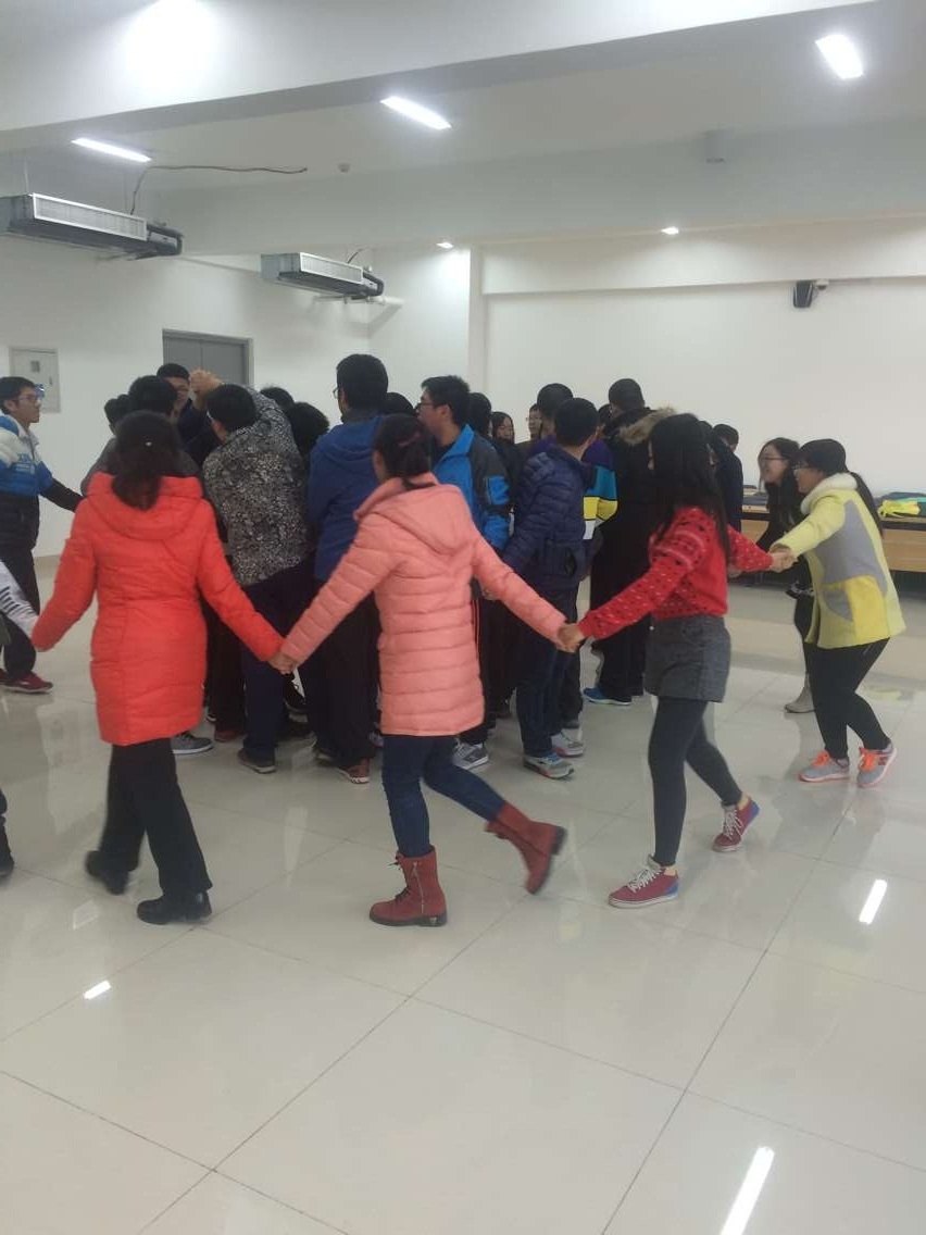 联谊活动由科普部门的小品拉开序幕,科普部门的小品诙谐之中又不失韵味,不仅活跃了现场气氛,而且使同学们对该部门有了更深入的了解。接下来同学们依次欣赏了创新创意部门歌曲《十年》、人资部门舞蹈“小鸡小鸡”等等丰富多彩的节目。本次联谊活动中更具特色的是各个素拓教练带领进行的素拓环节,在素拓环节中同学们做了“解扣子”“木板过河”“左手右手”等新鲜有趣的活动,并在活动之中展现出了自己积极活泼、具有团结精神的一面。