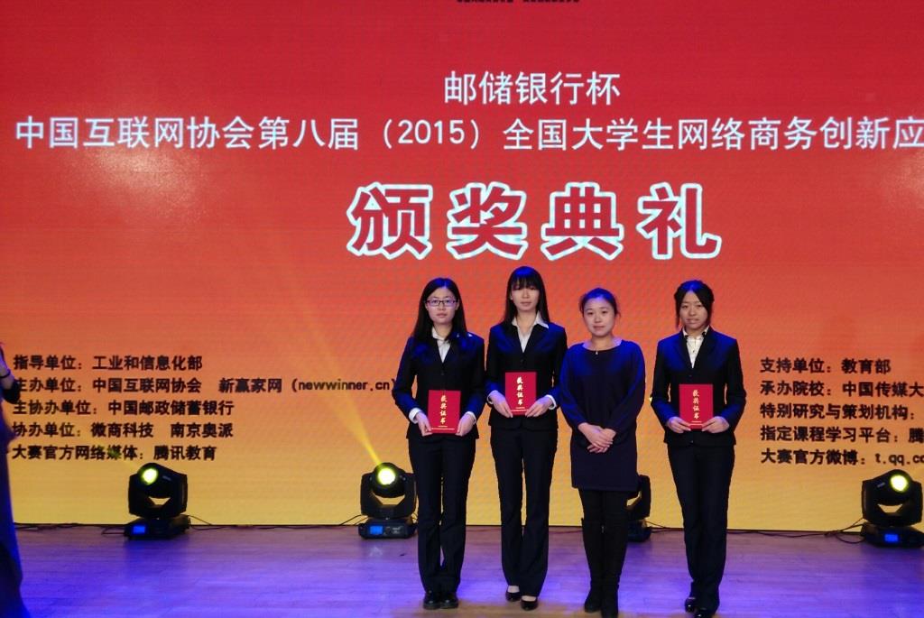 11月29日,由工业和信息化部指导、教育部支持、中国互联网协会主办、中国邮政储蓄银行主协办的邮储银行杯中国互联网协会第八届(2015)全国大学生网络商务创新应用大赛总决赛在中国传媒大学隆重举行。我校共有四支代表队入围全国总决赛。