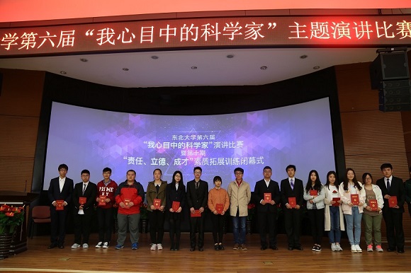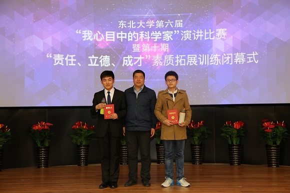 4月22日晚18:30,我校第六届“我心目中的科学家”演讲比赛暨第十期“责任、立德、成才”素质拓展训练营闭幕式在科学馆201隆重举行。出席本次演讲比赛的领导和评委有东北大学创新创业学院常务副院长张立志、党委宣传部副部长韩斌、学生工作处副处长王纯武、创新创业学院副院长贾建锋、学生指导服务中心职业发展指导中心主任田冠仁、文法学院团委书记蔡晓淇、冶金学院团委书记李炳熠、软件学院齐鑫。第十批“大学生创新创业训练计划”项目的全体成员参加了此次活动。
