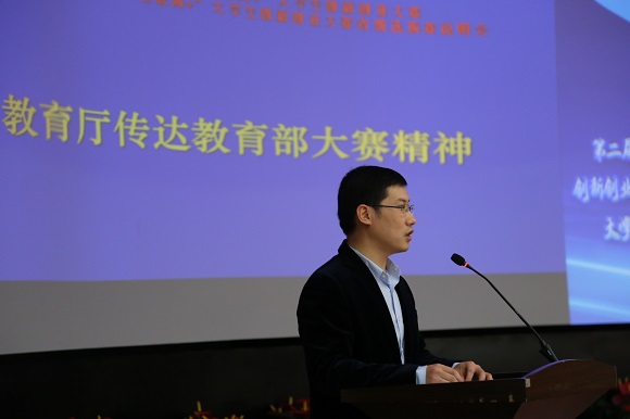 辽宁省教育厅高教处副处长李勇江传达了教育部关于举办第二届中国“互联网+”大学生创新创业大赛的有关精神,部署了第二届辽宁省“互联网+”大学生创新创业大赛暨第二届中国“互联网+”大学生创新创业大赛省级选拔赛的相关工作;他强调要将大赛作为全面深化教育综合改革的重要抓手,各高校要高度重视,加强宣传;广泛动员,认真组织;坚持宗旨,确保质量。