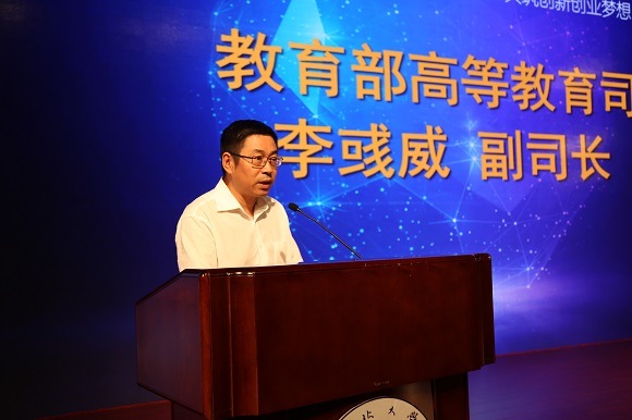 教育部高教司副司长李彧威在讲话中代表教育部高教司对大赛的顺利开幕表示热烈祝贺,并充分肯定了辽宁省互联网+大赛的组织成效。李彧威强调,创新是人类社会进步的灵魂,创业是推动经济社会发展、改善民生的重要途径。青年愿创业,社会才生机盎然;青年争创新,国家就朝气蓬勃。李彧威指出,培养创新创业人才是高等教育的重要使命,教育部认真贯彻党中央国务院的战略部署,联合十个国家有关部门共同主办互联网+大学生创新创业大赛,旨在深化高等教育综合改革,激发大学生的创造力,培养造就大众创业、万众创新的生力军,推动赛事成果转化和产学研助紧密结合,促进互联网+新业态形成,以创新引领创业、创业带动就业,推动高校大学生、高校毕业生更高质量的创业就业。他希望,大赛充分动员全社会的力量,努力打造永不落幕的比赛,为大学生创新创业提供完善的平台支撑和服务保障,并鼓励辽宁学子把握好时代机遇,将奇思妙想、创新创意转化为现实行动,服务社会、服务国家、服务人民。