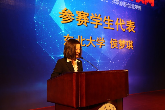 参赛学生代表东北大学侯梦琪回忆了自身的创新创业实践经历。她说,六年的大学生涯,最令她难忘的却是这条创新创业之路。有孤独、有温暖、有艰苦、有欣喜。一路走来,感谢学校、省有关部门为心怀创业梦想的有志青年提供前所未有的资源平台。未来,她和她的创业团队将以“互联网+”大赛为契机,培养创新意识、启迪创意思维、提升创造能力、造就创业人才,为振兴东北老工业基地和我省科技创新事业发展做出自己的贡献。