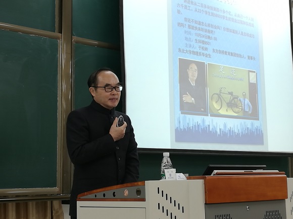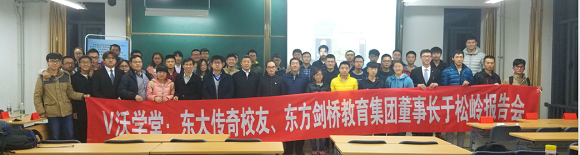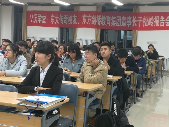 (创业部供稿)10月24日晚7:00,“V沃学堂:东大传奇校友、东方剑桥教育集团董事长于松岭先生报告会”于浑南校区生科楼B501隆重举行,本次报告会由东北大学校友总会携手创新创业学院联合主办,学生科学技术协会(浑南校区)承办。对外联络与合作处处长李鹤、创新创业学院常务副院长张立志、杰出校友煜宸科技总经理高宇博、创业部部长黄晓颖、科普部逄锐、校友联络部张旭华和近二百位大学生创新创业达人参与了活动。 创新创业学院常务副院长张立志代表学校向于松岭先生颁发了创业导师聘书,并就于先生对创新创业教育事业的大力支持表示衷心的感谢。 于松岭校友以“志向是人生进步不竭的动力”为题,围绕创业过程、实战经验、人生感悟三个方面展开报告。他以学长的身份结合自己的校园经历、创业经历、抉择过程鼓励学弟学妹们坚持理想,储存能量,吃苦耐劳,实现人生价值。他传奇般的创业经历引来同学们一次次热烈的掌声。 在互动环节,于先生对“您的教育集团涵盖了从幼儿园、小学、中学、大学等教育环节,有没有考虑过老年大学?”“您的报告旁征博引、引人入胜,您在学生时代更注意哪些方面知识的摄取,现在建议我们注重哪些方面的学习”等问题进行了悉心解答,并对创业学生的实际问题给予了分析和指导。在整个过程中,于松岭学长情感真挚,语言朴实而风趣,贴近学生视角,引起了与会者的共鸣,潮水般的掌声一次次响起!最后,于松岭先生以自己的座右铭“人生虽短暂,但能浓缩能精彩”勉励同学们。 本次活动有效感召了同学们的创业热情,对大学生合理规划职业生涯极具指导意义。