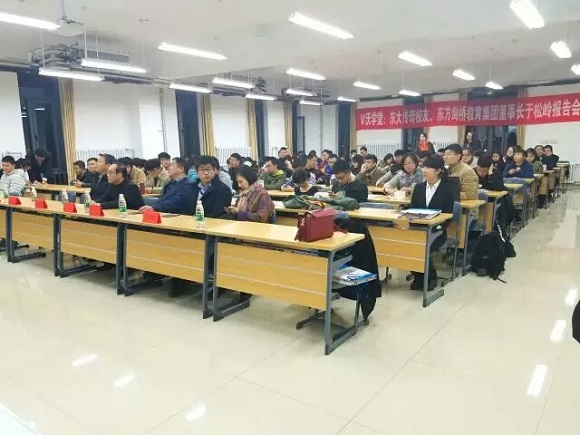 2016年10月24日晚6:50,于松岭校友报告会由东北大学校友总会携手创新创业学院主办,东北大学(浑南校区)学生科学技术协会承办于浑南校区生科楼B501举行!参加本次会议的有东方剑桥教育集团董事长于松岭,对外联络与合作处处长李鹤,创新创业学院常务副院长张立志,杰出校友煜宸总经理高宇博,创业部部长黄晓颖,东北大学学生科学技术协会指导教师逄锐和对外联络与合作处张续华。