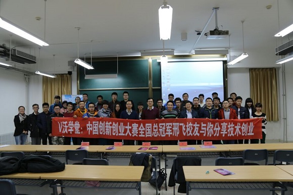 2016年11月11日18:30,由东北大学校友总会和创新创业学院主办,东北大学学生科学技术协会创业事务中心(浑南校区)承办的V沃学堂:“中国创新创业大赛全国总冠军邢飞校友与你分享技术创业”大会于生命学馆B501顺利举行。出席本次会议的有创新创业学院常务副院长张立志老师,副院长王刚老师,南京中科煜宸激光技术有限公司董事长邢飞,销售总监楚文龙,沈阳分公司总经理姚和川,机械学院杨建宇老师,东北大学对外联络与合作处副处长王晓英老师,校友会高广老师,校友会张旭华老师,学生科学技术协会指导老师逄锐老师和创业部部长黄晓颖老师。