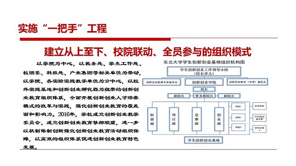 东北大学获得此类称号已经不是什么新鲜事,2015-2016年先后获得全国创新创业实践育人示范基地、辽宁省创新创业选育基地、辽宁省创业孵化示范基地等荣誉,并于近日由辽宁省教育厅推荐参评全国创业教育百强示范校。大学生创业典型刘洪伟、沈波、龚佳乐等同学也先后获得全国大学生创业百强人物等殊荣。优异的成绩得益于科学的规划和高效的执行,创新创业学院常务副院长张立志作为推进会特邀嘉宾分享了东北大学创新创业教育体系的建设思路。下面就由小编为你进行选择性揭秘: