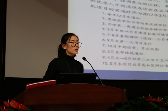 说明会上,朱翠兰老师针对项目实施过程中可能涉及项目过程管理、项目成员变更、科研日志撰写规则、项目经费使用规范、论文和发明专利申请程序、项目奖励及奖励机制等相关内容进行具体详细的讲解,并鼓励同学们独立探索、自主实践,保持良好心态和团队协作,圆满完成各项科研任务,真正在项目实施过程中有所收获。