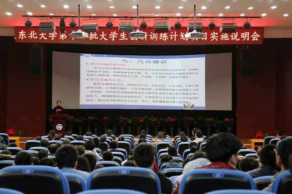经过校院两级评审,东北大学第十一批大学生创新训练计划项目拟资助项目128项、自筹项目178项。本次说明会主要围绕“大学生创新训练计划”实施目的意义、我校“大学生创新创业训练计划”实施情况以及本批创新项目具体实施要求等内容展开,旨在促进创新项目的顺利实施,提高项目实施质量,保证学生在“做中学”的科研训练中切实提高科研能力。