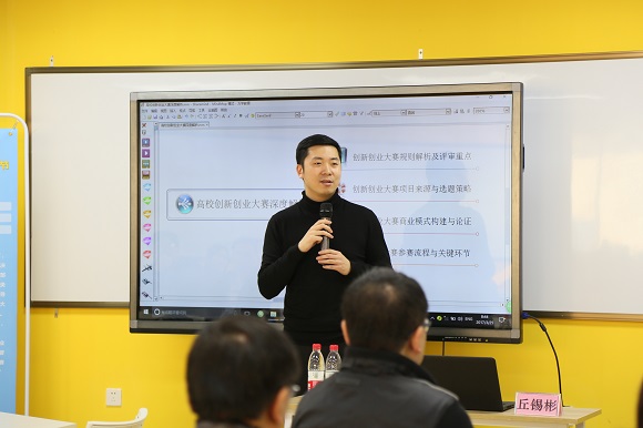 在为期两天的培训中,培训老师结合自身深厚的创业理论功底和丰富的创业实践,对商业模式设计与论证、创新创业大赛作品文案撰写与优化、创业核心团队企业职务能力提升、创业大赛PPT制作、创业大赛赛前训练关键要素等进行深入浅出的讲解。丘锡彬老师对2016年“互联网+”创新创业大赛全国总冠军项目——西安电子科技大学大学小卫星项目进行了细致剖析,比较了我校科研优势项目与冠军项目的共同点,分析了项目推广与展示方面的差异点,给参训老师很多启发;方铭洋老师强调“参加大赛,学生优秀的策划书是他们优先进入比赛的通道,但是最后向评委答辩才是关键环节。”通过对两个手机上门服务项目的答辩对比,他讲解了答辩的方法与技巧。他们思路清晰,层层剖析,深厚的创业大赛指导功底博得了老师们阵阵掌声。