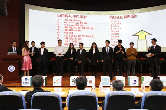 在“创业初构想”环节中,各团队分别从不同角度详细的介绍了项目的市场定位、竞品分析、发展规划等,投资人精准视角的提问和团队认真如实的回答将大赛推向高潮。这些创意新颖、构思严谨的创业项目让观众和评委眼前一亮。在得知Anior studio动漫工作室团队成员均为大一同学时,全场爆发出热烈的掌声。致力于少年科技启蒙教育的智慧方创客教育获得大丰收,获得11500元创业基金,冲入前三甲,改写奖金排序榜。