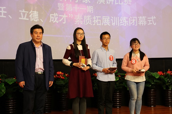 演讲比赛的同时还进行了第十一期“责任、立德、成才”素质拓展训练营闭幕仪式,创新创业学院副院长王刚现场宣读了《关于表彰第十一期“责任、立德、成才”素质拓展训练营优秀学员的决定》。机械学院张国权、冶金学院魏玉宁、信息学院罗吉瑛、计算机学院陈英豪等36名同学获评“东北大学第十一期‘责任、立德、成才’素质拓展训练营优秀学员”荣誉称号。