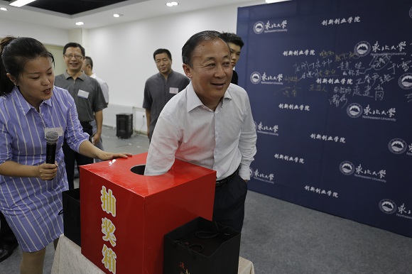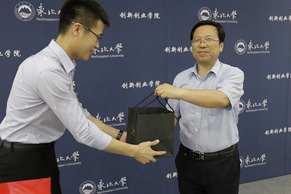 张立志院长向与会师生介绍了创新创业学院在过去几年里的项目进展、学生获奖、优秀毕业生发展等情况,展示了东北大学创新创业教育的发展与取得的成果。他对毕业生们说:你们的成长就是创新创业学院的成长,我们共同分享着卓越的你们带来的荣耀,比如ACTION机器人团队连续两届的全国大学生机器人大赛全国总冠军、谢海滨同学连续两年的ACM程序设计大赛金奖、王泽燊同学的中国青少年科学技术奖、刘洪伟同学的连续两年全国创业英雄百强……大家毕业了,既舍不得你们离开,又期盼着你们毕业后传回母校的佳音,今天的酒会是离校前送与你们最超值的礼物,让本就优秀的你们结识同龄人中的佼佼者,无论在耶鲁大学、清华大学、东北大学,在华为、深信服,还是在研究生支教团,在部队,在创业,拥有共同的双创东大人名片的你们,定会更有力量!
