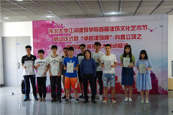 6月22日,建筑学院于建筑学馆A座一楼大厅举办首届建筑文化节启动仪式暨第四届实体搭建大赛闭幕式。学院党委副书记兼副院长徐长文、副院长曲艺、建筑系主任金承协、规划系主任高雁鹏、专业教师王大鹏、陈雷、崔俏、单伟婷担任比赛的指导教师和评审。