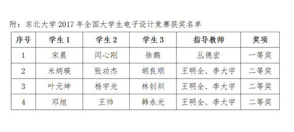 2017年全国大学生电子设计竞赛于8月9日至8月12日在全国31个省(市、区)同步进行,我校共有50支参赛队、150名同学参加竞赛;8月13日至8月17日辽宁赛区开展测评工作,以及8月21日辽宁赛区开展为期一天的全封闭综合测评工作。8月31日全国综合测评开展,最终我校4件入围作品在全国竞赛中获奖。