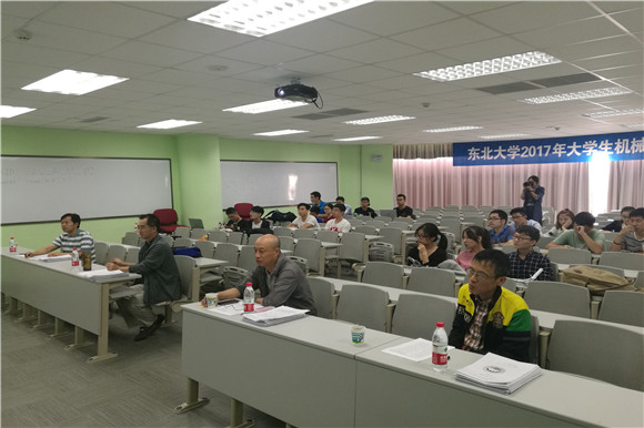 9月9日上午,东北大学2017年机械创新设计竞赛现场决赛于南湖校区科学馆206成功举办。本次竞赛共有19支队伍参加竞赛,作品包括停车装置类8项,采摘机械类11项,由机械学院李树军、巩云鹏、周淑文老师及信息学院丛德宏老师出席担任评审专家。