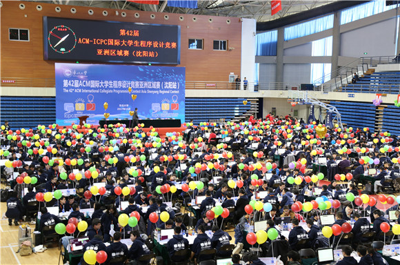 10月21-22日,第42届ACM国际大学生程序设计竞赛亚洲区域赛(沈阳站)在东北大学刘长春体育馆举行。北京大学、上海交通大学、复旦大学、武汉大学、华中科技大学、南开大学、厦门大学、国防科技大学、哈尔滨工业大学、吉林大学等123所高校的180支代表队参赛。
