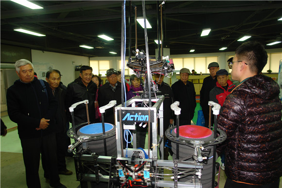 在参观了ACTION机器人创新基地、T-DT机器人创新基地、智能车创新基地、1923咖啡、创E空间工作室后,老教授们被青年一代的卓越风采和科技热情所感动,一致认为,构筑创新型、复合型、应用型人才所需的知识结构、社会责任感,是一个系统而伟大的工程,在这方面东北大学做得很好。老教授们还向学生表达了为青年一代服务的真挚情感,王振范老师说:我们作为教育工作者责无旁贷,要为实现中华民族的伟大复兴和腾飞,老骥伏枥、志在千里、再立新功。