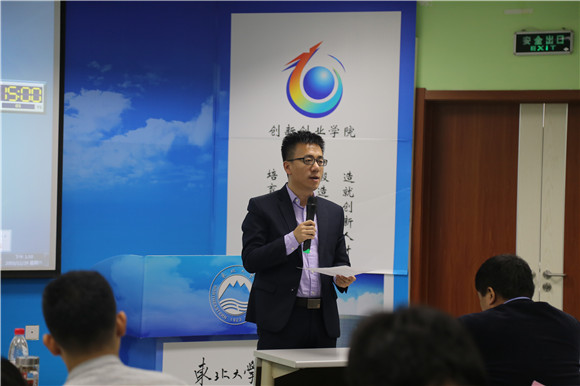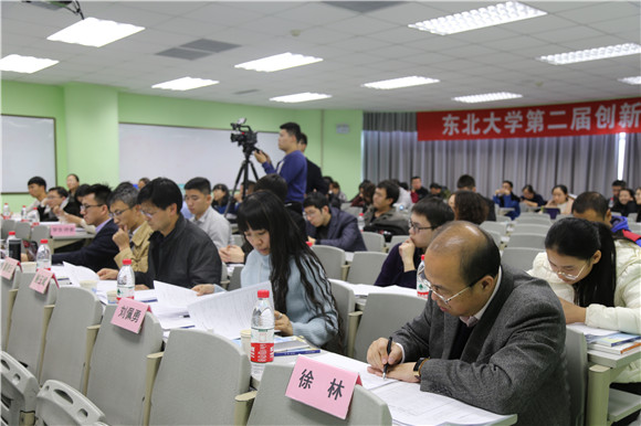 一流的师资队伍是建设世界一流大学的关键环节,创新与创造能力是其核心的衡量标准之一。2017年11月15日,在科学馆206教室举办了东北大学第二届创新创业教学大赛。本次大赛由教务处、工会、人事处及创新创业学院联合主办,沈阳机床集团行政总监、东北大学创业导师董凌云,校工会主席张国联,教务处副处长沈峰满,人事处副处长沈岩柏,计算机科学与工程学院副院长鲍玉斌,生命科学与健康学院副院长刘佩勇,信息科学与工程学院徐林,创新创业学院常务副院长张立志,副院长贾建锋和创业部部长黄晓颖出席大赛并部分担任评委,大赛还在各学院随机选取了7位本科生作为学生评委。本次大赛由黄晓颖主持,经各学院限额推荐及主办单位资格审查共有24名专业教师报名参赛,最终有17名教师进入现场赛。