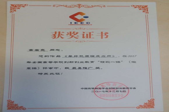高宏亮的微慕课《单片机原理及应用》,将创新创业思想和方法融入到专业课程教学中,制作了授课视频,实物演示教具等资源,以多样形式展示授课内容,满足不同学习需求;通过不断完善的多维立体化交互式教学平台,了解学生实际听课效果和掌握程度,调整授课方法和方式,将教学内容转变为高度创造性,培养学生具备一定的工程实践能力和工程师素养。该课程曾荣获东北大学首届创新创业教学大赛一等奖,并被推荐参加此次全国高等学校创业教育“精彩一课”的评选,最终荣获一等奖及最具推广奖。