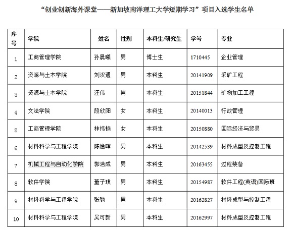 为落实中央《关于做好新时期教育对外开放工作的若干意见》中“通过加大留学工作行动计划实施力度、加快拔尖创新人才培养”的要求,响应国家“大众创业、万众创新”的号召,推动学生境外交流学习、促进拔尖创新人才培养,学校设立了“创业创新海外课堂——新加坡南洋理工大学短期学习”项目。该项目将组织学生赴新加坡南洋理工大学针对创新创业与科技等内容进行为期2周的强化学习,由新加坡南洋理工大学科技创业中心的世界级顶尖学者与教授授课。