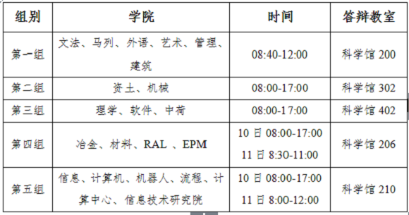 评审地点:南湖校区科学馆,具体时间、教室见下表: