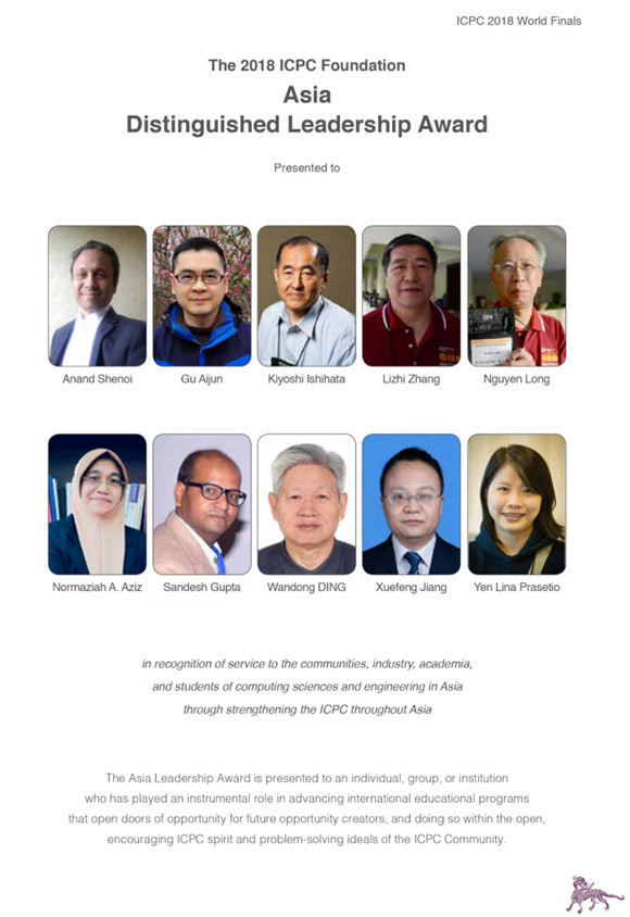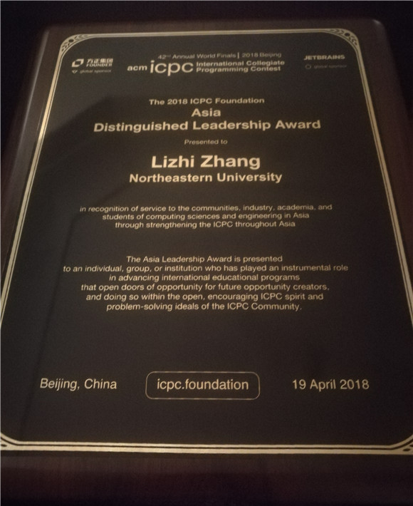 4月15-20日,第42届ACM国际大学生程序设计竞赛世界总决赛(ICPC World Finals)在北京大学隆重举行,来至全世界六大洲的140所高校代表队入围本届总决赛。十三届全国政协副主席,中国科学技术协会主席万钢、北京大学校长林建华等领导和嘉宾出席竞赛开幕式并致辞。竞赛正式开始前,ACM-ICPC组委会举行了世界各个区域赛赛区负责人工作会议,并在会议上进行了表奖。我校创新创业学院张立志院长作为亚洲区域赛赛区主任(RCD,Regional ContestDirector),荣获ACM国际大学生程序设计竞赛亚洲杰出领导奖(Asia Distinguished Leadership Award),表彰其在推动国际大学生教育事业中发挥了重要作用,为学生提供了广阔的学习、实践机会。