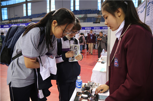 本次作品展共展出学生创新项目227项、创意项目101项、教师创新项目51项。展会现场既有“高大上”的抗肿瘤药物、脑电波监测疲劳驾驶提醒装置,也有“接地气”的多功能救生衣、智能马桶等,尽显中小学生的奇思妙想。英才计划的学生们一进入现场就被各类创新设计吸引,大家用一个多小时的时间饶有兴致的参观了所有参展作品,并与参赛选手现场互动交流。