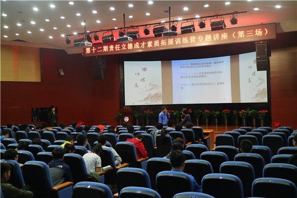2018年4月21日上午9:30,东北大学第十二期“责任、立德、成才”素质拓展训练营专题讲座(第三期)《创造性思维开发训练》在南湖校区科学馆建龙学术报告厅成功举办。本期讲座邀请到我校文法学院张平教授,我校第十二批大学生创新训练计划项目的项目组成员代表参加了本次讲座。