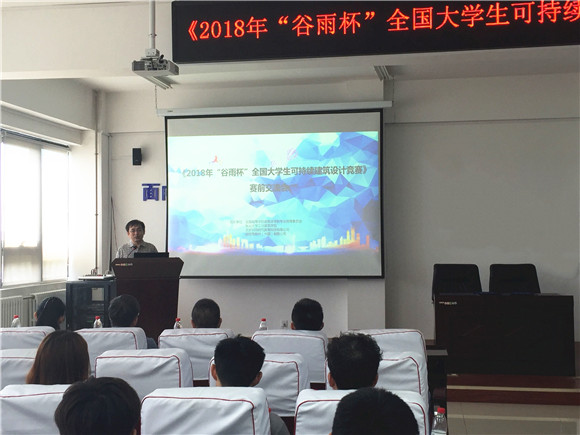 5月19日上午,由全国高等学校建筑学学科专业指导委员会主办,江河建筑学院承办的2018年“谷雨杯”全国大学生可持续建筑设计竞赛沈阳站赛前交流会,在我校浑南校区信息学馆B520室召开。江河建筑学院院长修春亮、重庆交通大学建筑与城市规划学院副院长董莉莉、哈尔滨工业大学建筑学院孟琪、欧特克软件有限公司经理黄庆九、北京谷雨时代教育科技有限公司总经理程伟出席交流会,来自我校及沈阳建筑大学、辽宁工程技术大学、沈阳城市建设学院、沈阳城市学院、北华大学等多所高等院校的70余名师生代表参加会议。