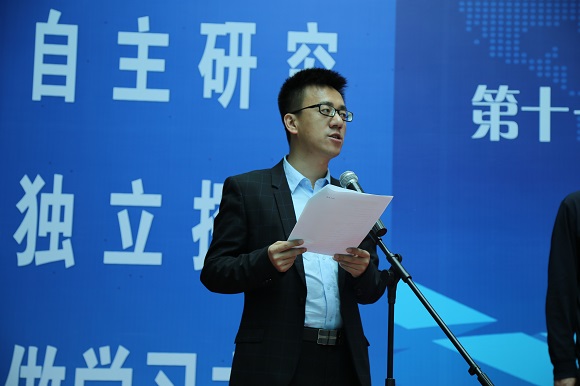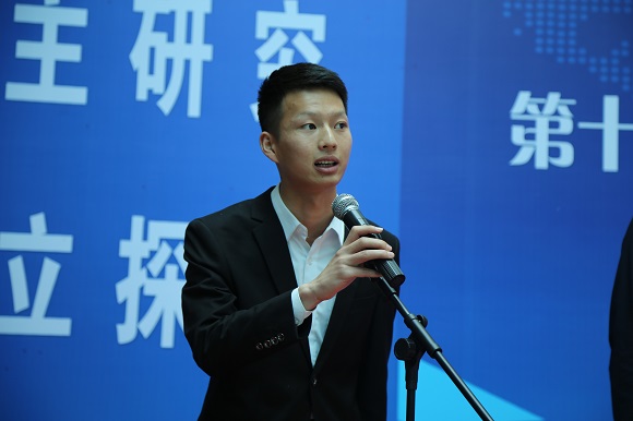 开幕式上,与会师生欢聚一堂,见证累累硕果,分享收获喜悦。来自《肿瘤坏死因子α介导环氧合酶2-调控β淀粉样蛋白产生的分子机制研究》项目的郑少钦同学代表本批项目的项目成员做结题发言,分享一年来的科研经历,展示项目进展与实施成效。对外联络与合作处处长李鹤受邀为东北大学第二届科研日志评选大赛一等奖获奖选手颁奖;校团委书记闫研受邀为“青年红色筑梦之旅”小分队授旗。132个参展项目现场展示了项目研究成果,涉及创意设计、新能源、新材料、软件开发、绿色冶金、生物医学、电子信息、虚拟现实、机器人等多个领域,吸引了大批师生驻足观看。