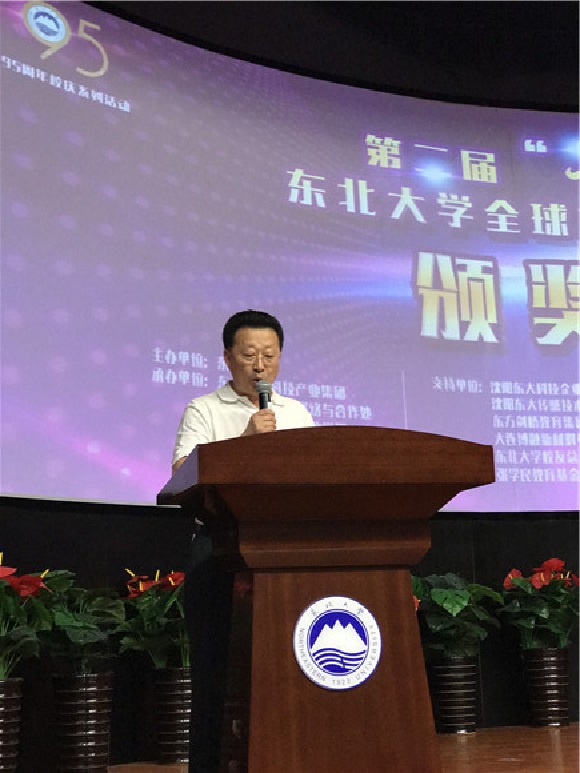 东北大学党委副书记张国臣在颁奖礼上发表讲话,介绍了学校近年来在创新创业工作中取得的成效,并指出:“举办此次大赛是把广大校友自身拥有的价值作为资源提出,结合母校的系统资源、社会资源,满足学校发展和校友自身发展的需求,凝聚东大人的创新创业力量,极具爱校、爱乡、爱国、爱人类的深远意义。大赛搭建了在校学生、校友的创新创业项目与专业资本、各级赛事、校友资源的对接通道,构建了以学校为纽带、以项目为依托、以校友为支撑的资源共享平台。在‘大众创业,万众创新’的时代背景下,深入实施国家创新驱动发展战略,把‘双创’工作推向了更大范围、更高层次、更深程度,为国家经济发展提供强大助力。伴随着一流大学建设的不断深入推进,学校将进一步整合资源,深化创新创业工作,加强与校友和社会各界的密切联系、沟通与合作,促进共同发展。”
