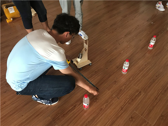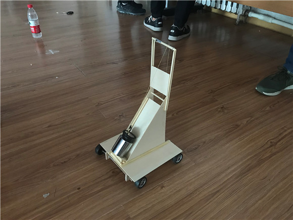 本次竞赛采用命题制:小车行走过程中完成所有动作所需的能量均由此重力势能转换获得,不可利用任何其他的能量。小车具有转向控制机构,且此转向控制机构具有可调节功能,以适应放有不同间距障碍物的竞赛场地。小车设计、材料选用及加工制作均由参赛学生自主完成。若发现存在购买现成商品,直接取消比赛资格。该比赛以小车全部车身通过障碍物连线为越过一个障碍物为绕障成功,以小车成功绕障数量来综合评定成绩。