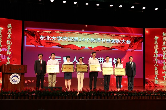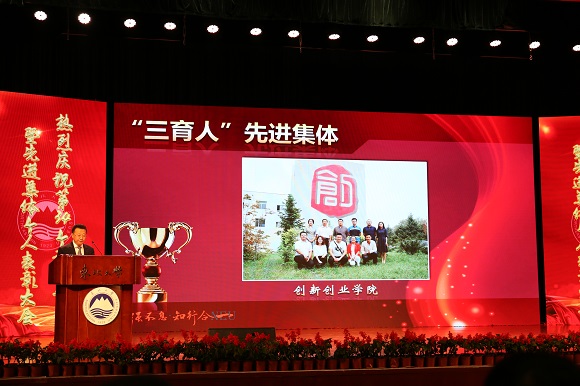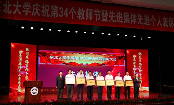 2018年9月10日下午2:00,东北大学庆祝第34个教师节暨先进集体先进个人表彰大会在汉卿会堂蔡冠深报告厅举行,受表彰的先进集体及个人、学校领导班子、中层干部、基层学术组织负责人和部分学生代表参加大会。创新创业学院获评东北大学2016-2018年度先进集体、2016-2018年度东北大学“三育人”先进集体,项目部部长朱翠兰获评“三育人”先进个人。院长张立志、副院长王刚受邀出席大会,代表学院接受先进集体表奖。