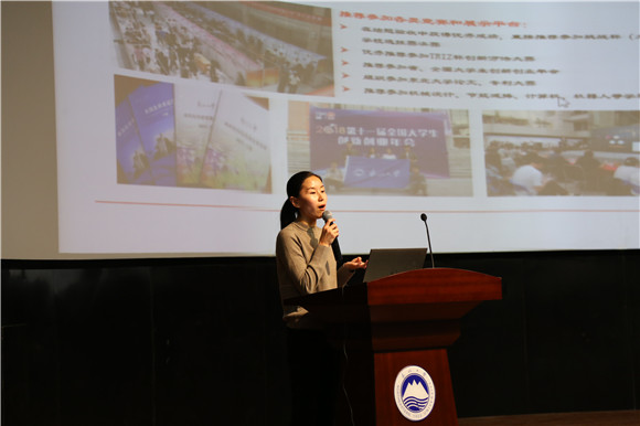 报告中,朱老师详细介绍了国家级大学生创新创业训练计划项目的实施背景以及我校特色“三四五”科研训练体系的构建与实施。结合我校十二年项目组织实施与管理经验,朱老师从团队组建、指导教师遴选、项目申报书撰写以及项目中期检查、结题验收、奖励政策等相关内容为全体同学做细致解读,并对同学们当前在项目申报阶段可能面临的一些问题进行现场解答。